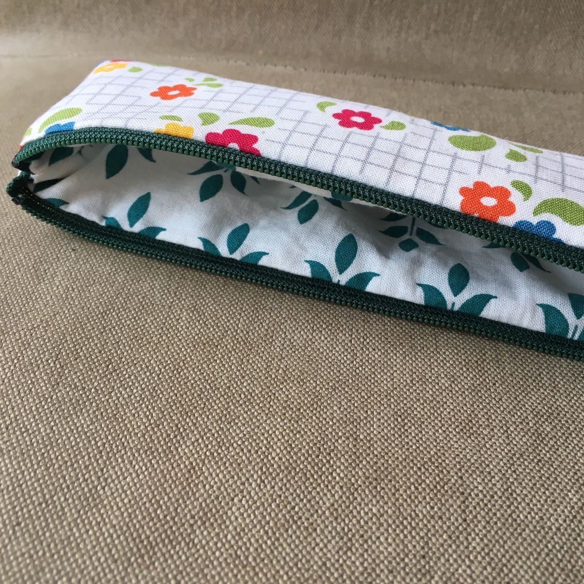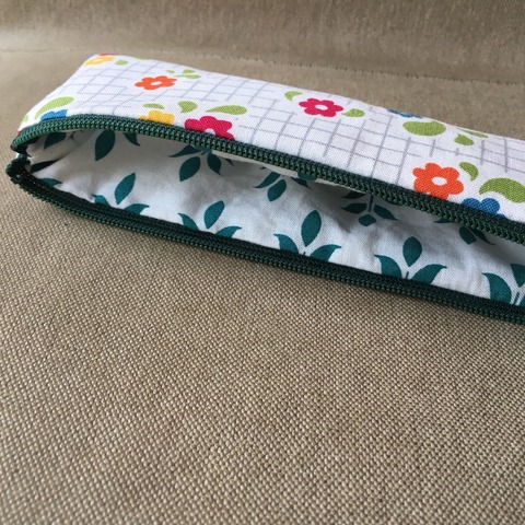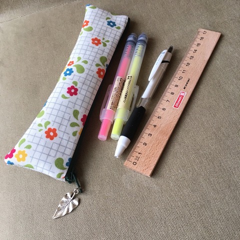 「さっぱり小花」という言葉が浮かんでくるような生地で、スリムペンケースを作りました。
