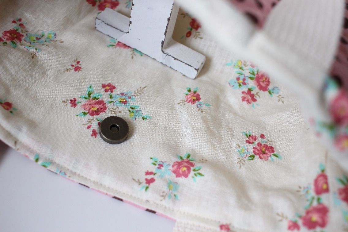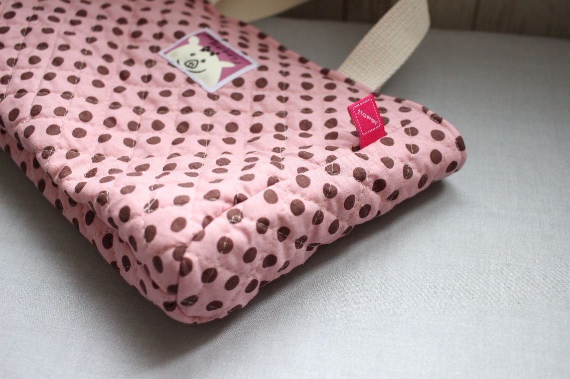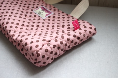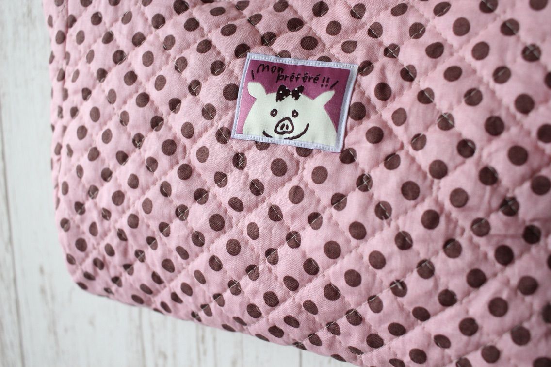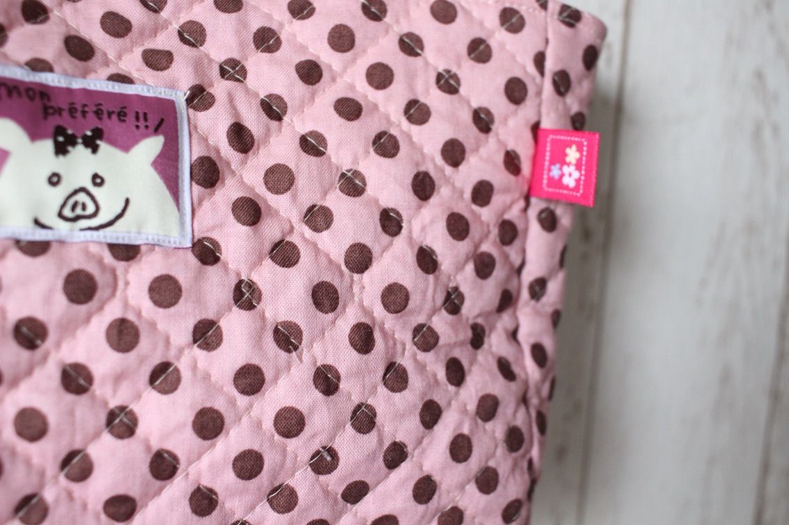 ピンクにチョコドットのキルティングで小ぶりなバッグを作りました。