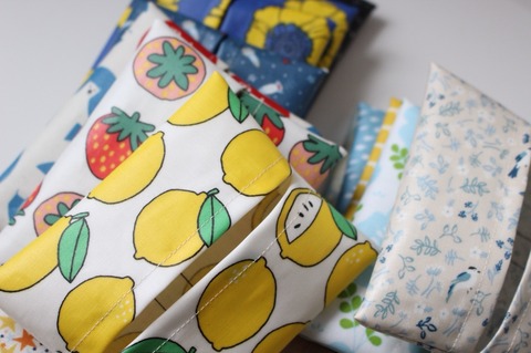 今日は天気が悪く暗いので、1枚だけの写真なのですが、ラミネート加工の生地で、私にしてはたくさん作りました^^
