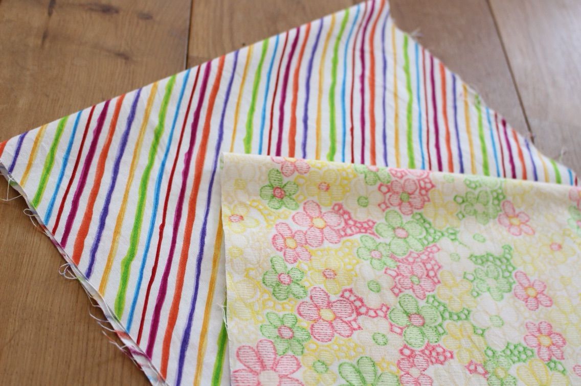 斜めストライプの方はミミに表示がなかったのでわからないのですが、こちらもかわいい生地ですね。